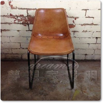 【夢想家照明】 LOFT 工業復古風 仿舊鐵件 鉚丁式駱駝真皮座墊餐椅 咖啡 DL806098-1 |