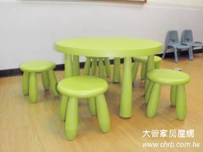 蘋果綠圓桌椅組<1張桌子6張小椅子>