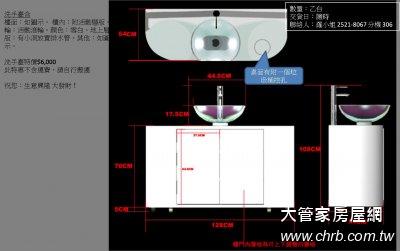 洗手臺含檯面, 櫃內:附活動層版,輪:活動滾輪,顏色:雪白,地上層版:有小洞放置排水管,其他:如圖示。