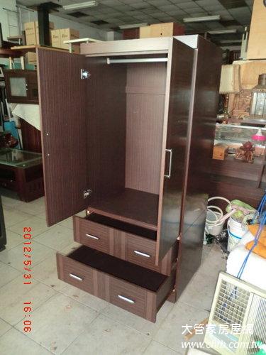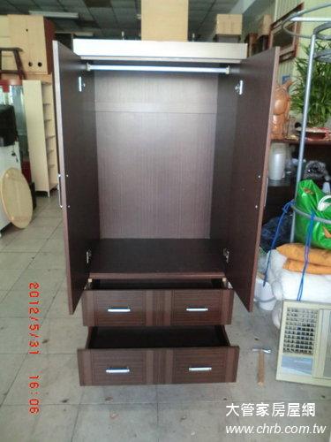 雙抽雙門衣櫃 木芯版衣櫥 衣架 中古家具買賣 2手家具回收 |