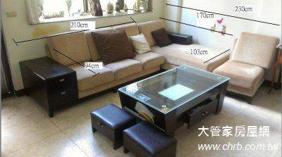 1. L型布沙發一組 (可拆成L邊沙發、三人座、一人座 ) 總尺寸: 317cm *