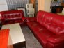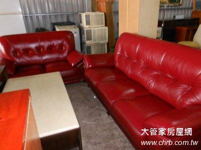 桃園幸福二手家具買賣~二手3+2朱乾紅半牛皮沙發特價中